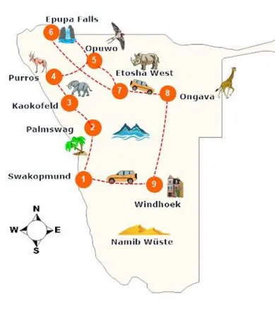 Geführte Camping-Safari in's Kaokoveld - Reiseverlauf
