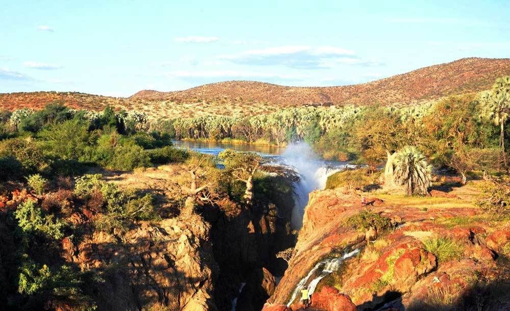 Die Szenerie könnte nicht malerischer sein - der mächtige Kunene, dichtbewachsene Ufer und die malerischen Fälle...